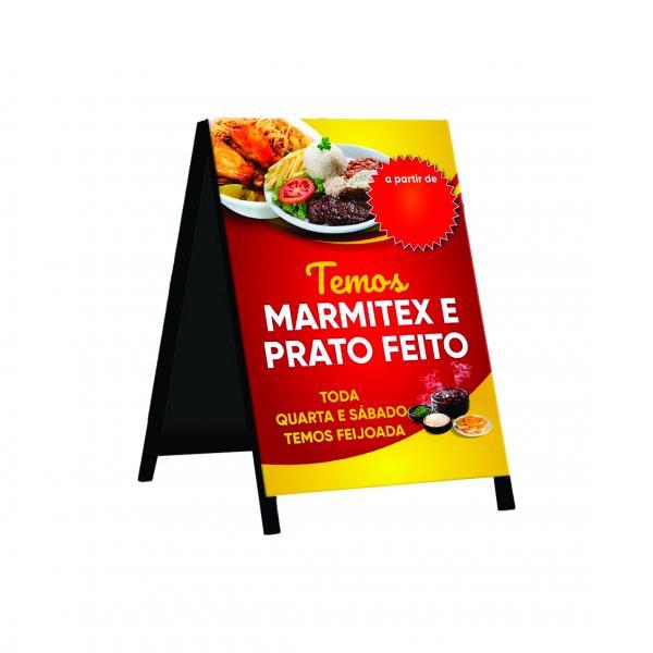 Material: Cavalete fabricado em madeira natural pinus revestido com 2 lonas impressas